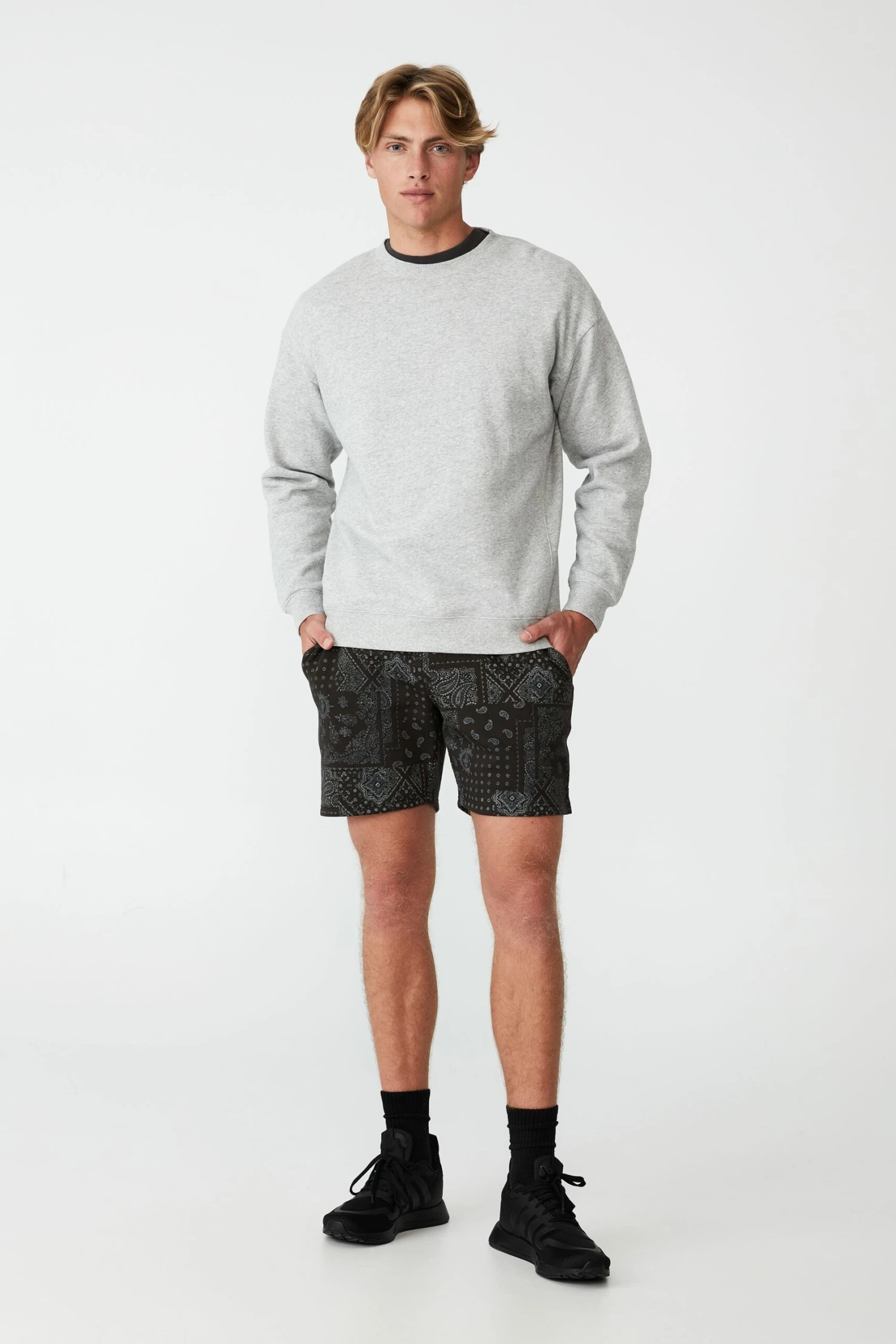 Relaxed fit Mid leg length Elasticated waistband with drawstring Side seam pocket Zipper back pocket Licensed graphic Soft brushed back fleece