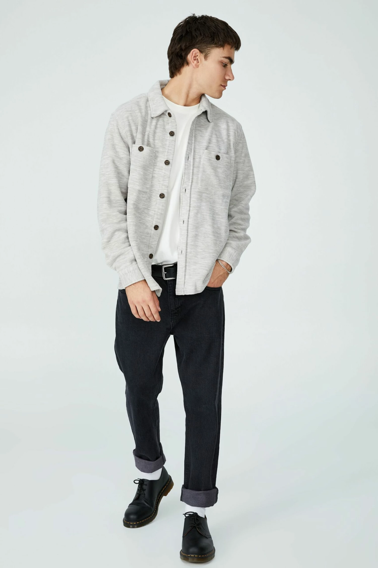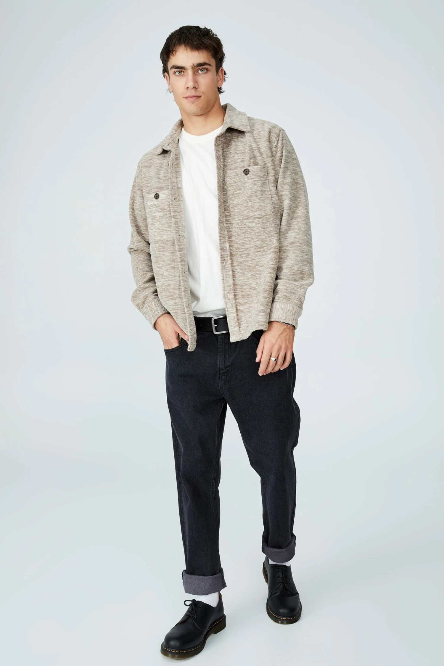 Master the art of Urban utility with the heavy over shirt in rugged fleece. The ultimate shirt/jacket hybrid, this button down shirt will quickly become the backbone of your streetwear roster