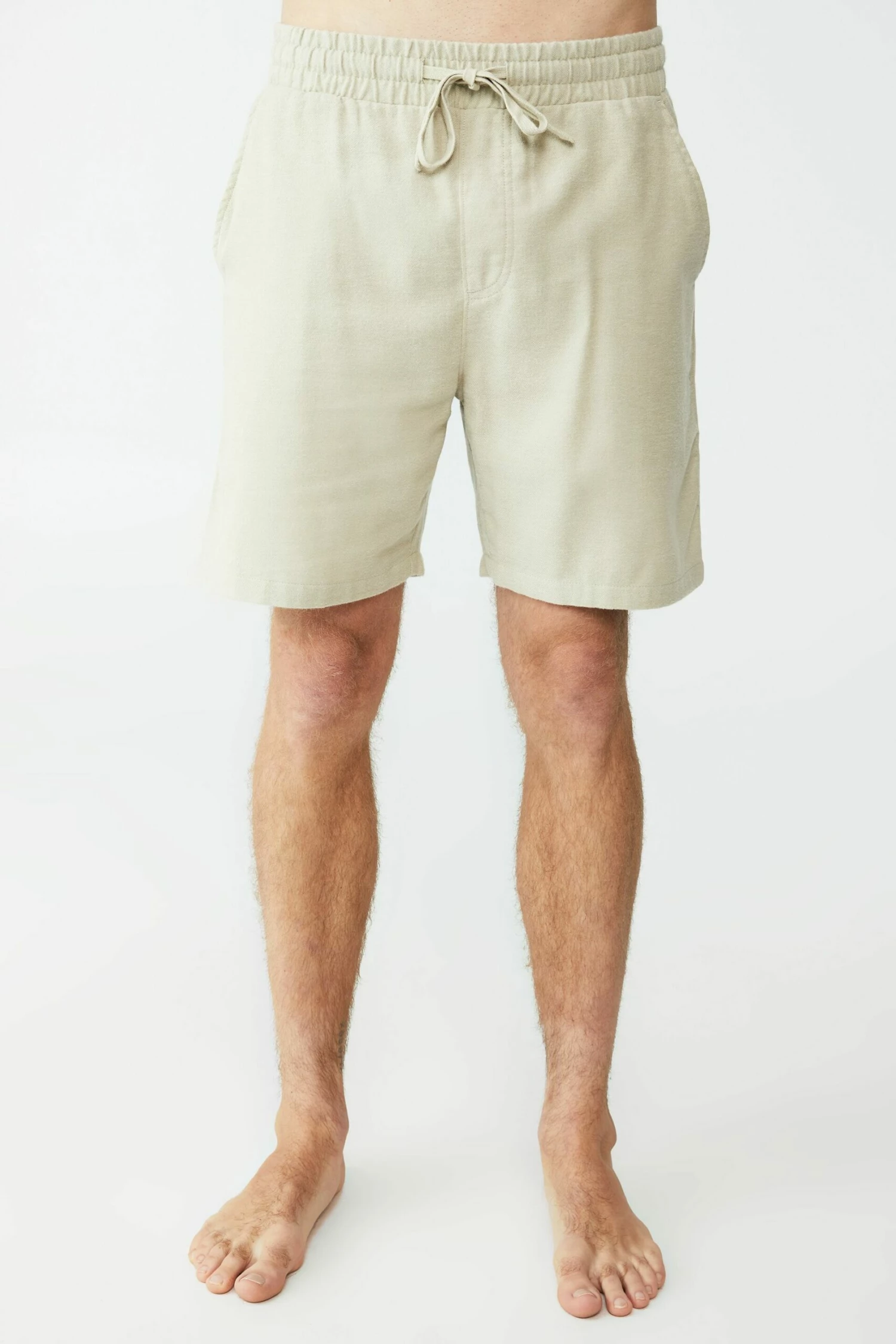 - Elastic drawstring waistband with Mock fly