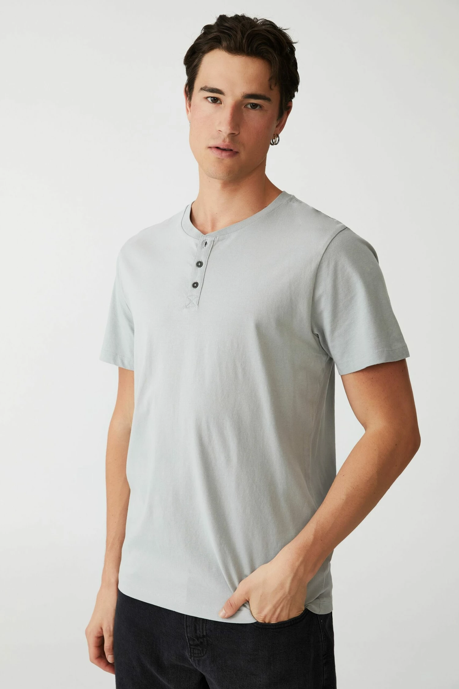 - Henley neckline