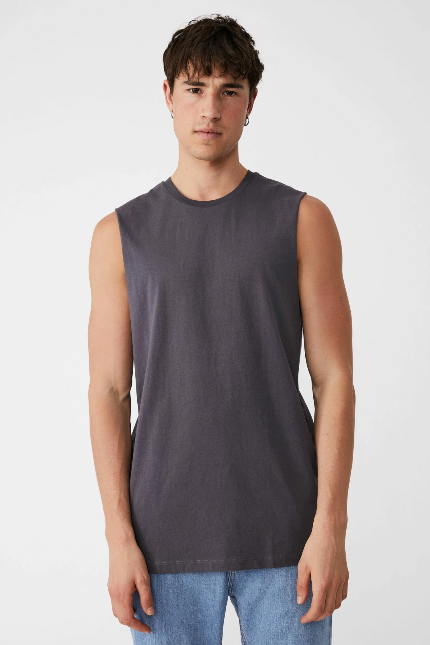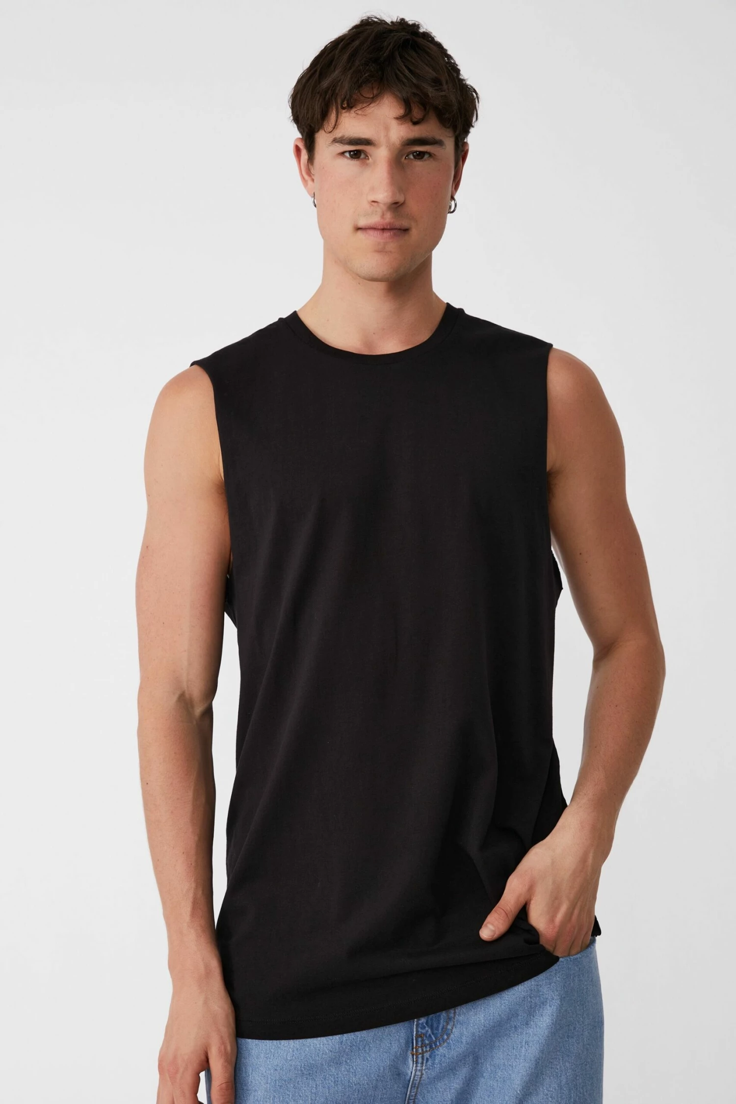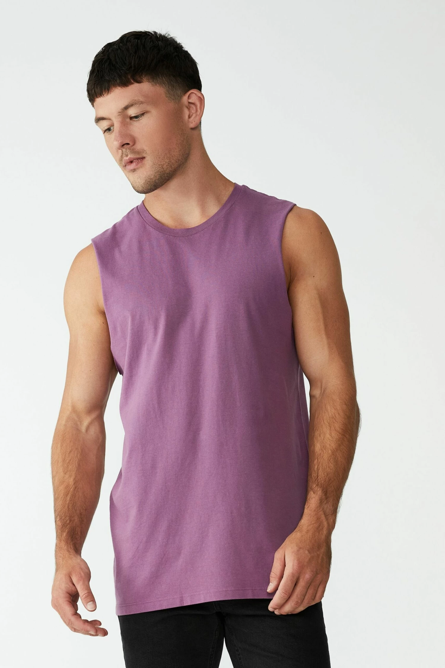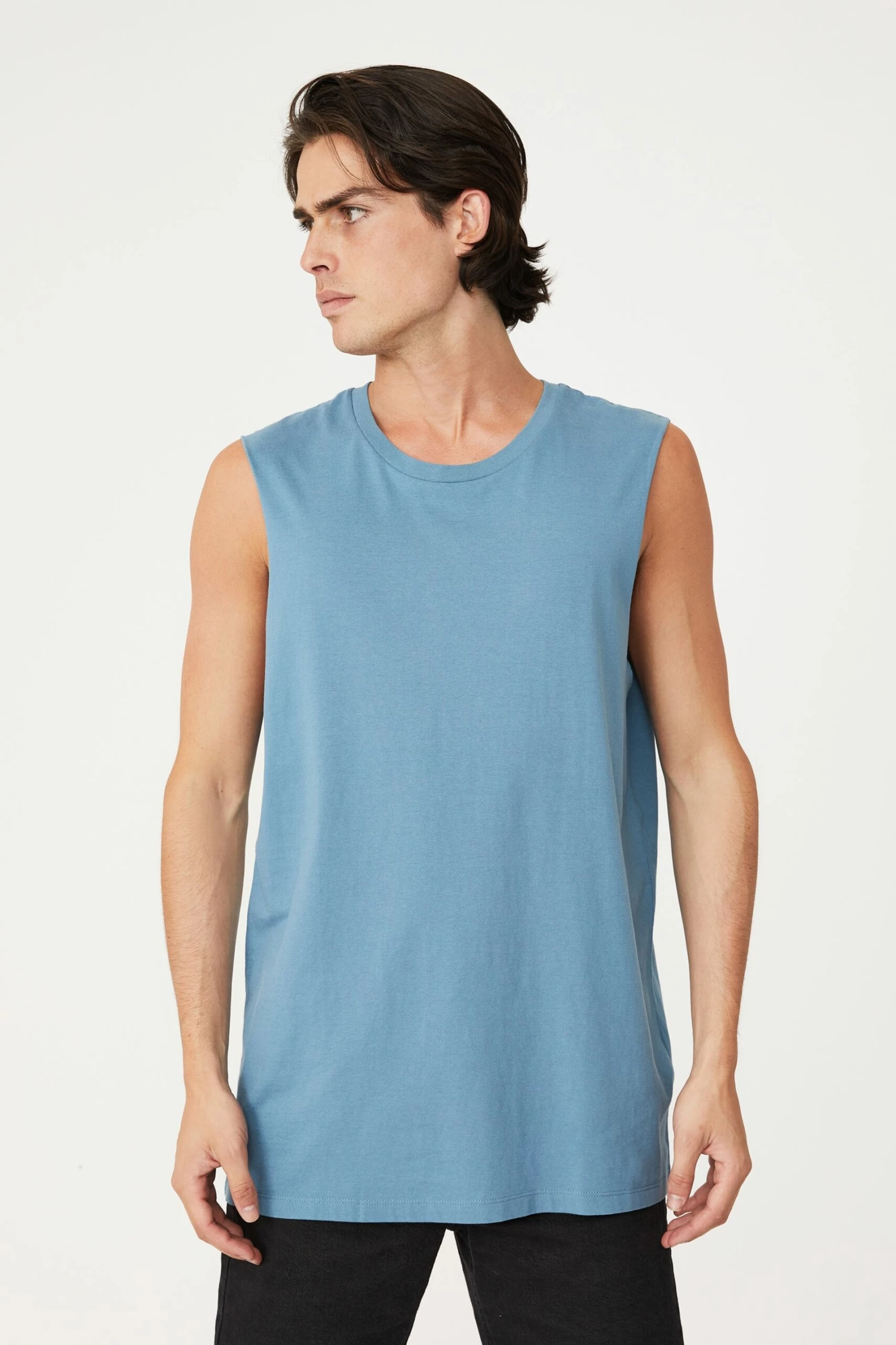 - Rounded crew neck muscle top