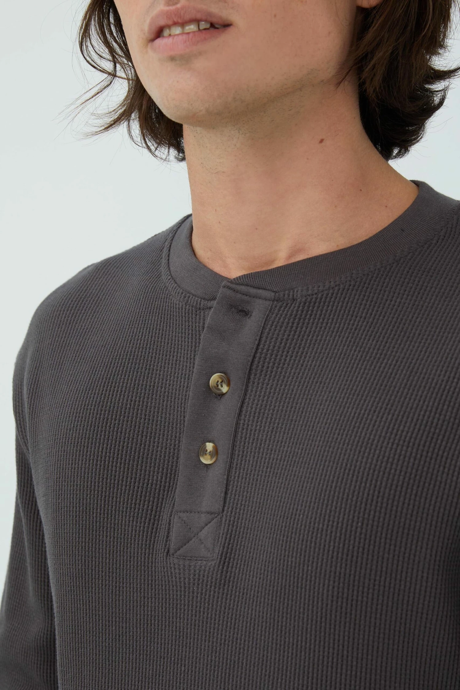 - Henley neckline