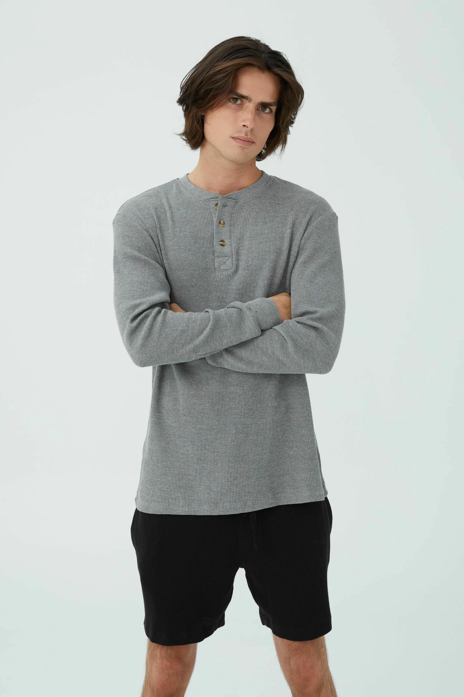 This Long sleeve Henley T-shirt comes in waffle fabrication for added effect. Perfect for layering or wearing on it’s own.